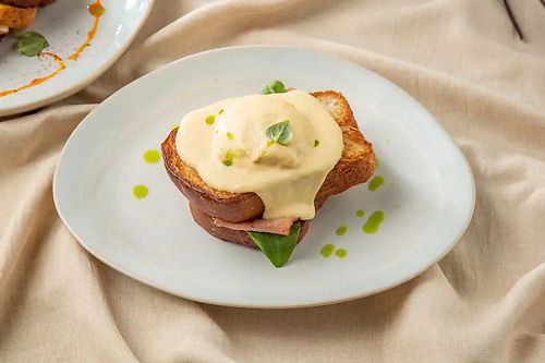 Бриошь с индейкой и сырным соусом